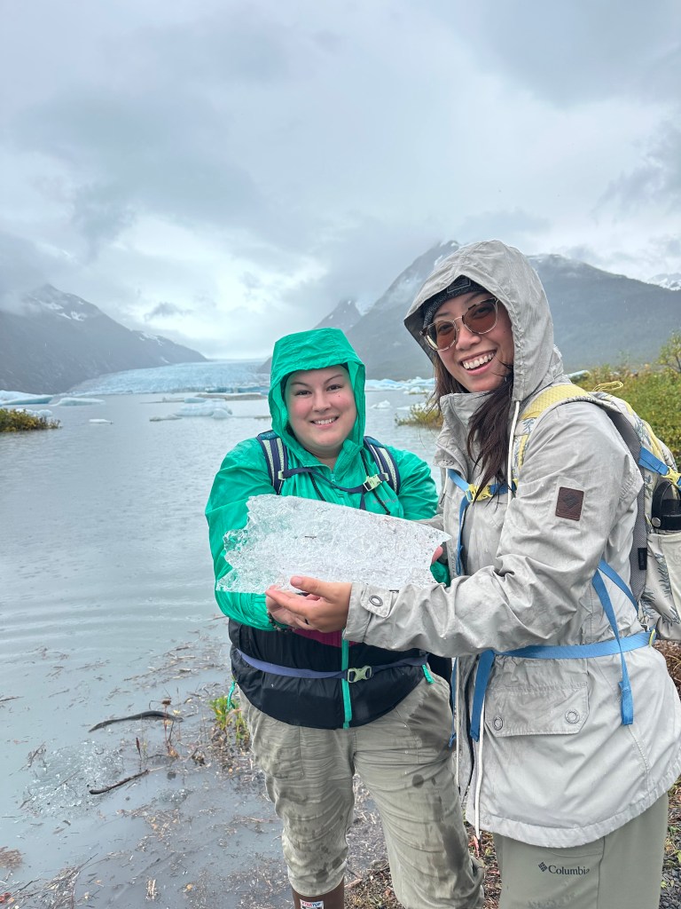 During the railroad trip, we rode through the Anton Anderson Memorial Tunnel which measured 2.5 miles long. It served both cars and the train and ran on a strict schedule. We had to wait 40 minutes before we were allowed to go through the tunnel to reach the train before last call (we barely made it). Once we left Whittier, we road to the Spencer Glacier and got to hike a short trail to see the glacier. I had never seen one previously and was pleasantly surprised it had a blue color to the ancient ice.